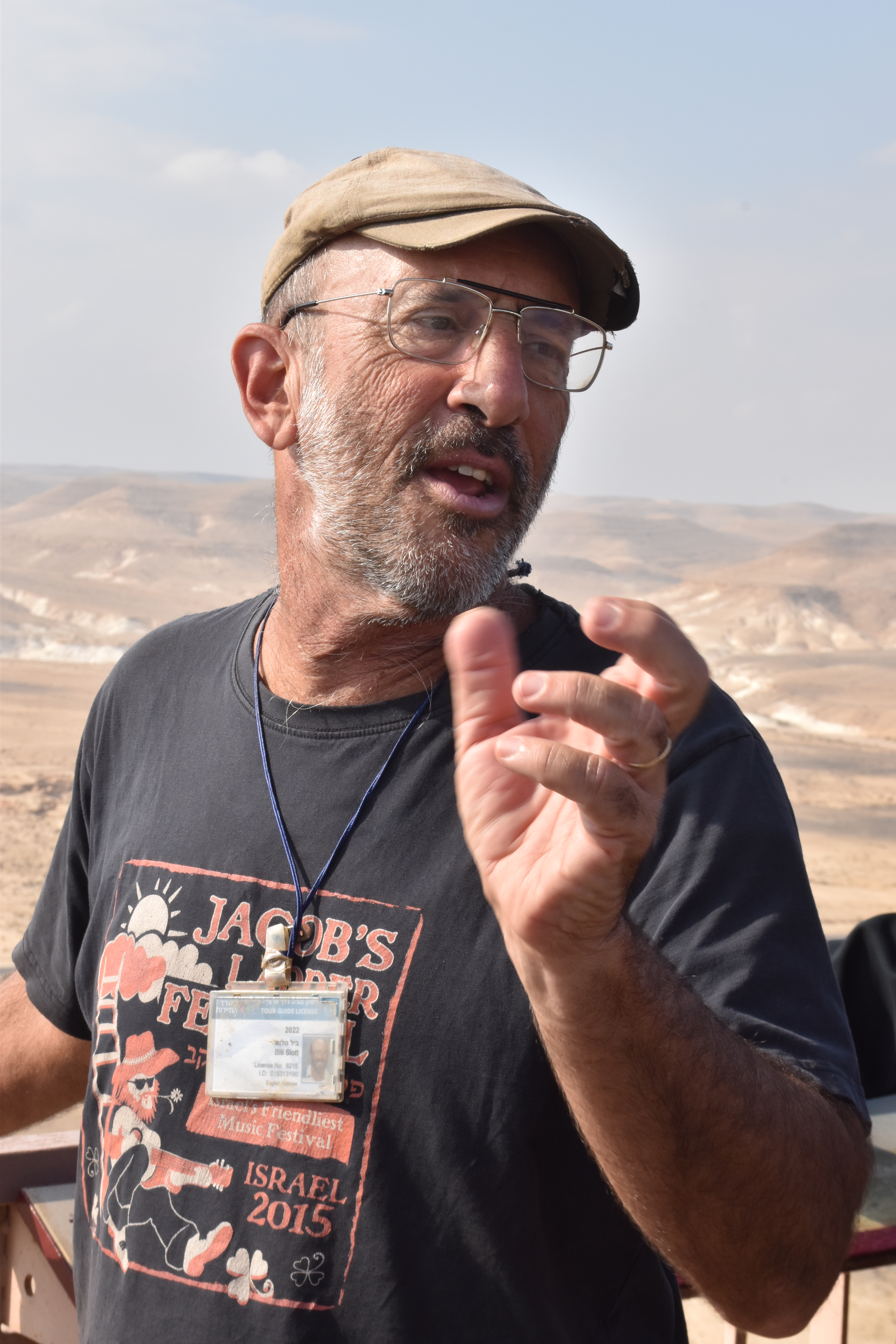 If you’re wearing a 2015 Jacob’s Ladder t-shirt, there is only one way you got it. Not on Amazon, not in any clothing store in a mall, not second hand on eBay or in an estate sale. Unless you stole it, you got it by being at the folk festival in Ginosar that year, and it goes without saying that our friends were there, because they are ALWAYS there. After all, they are the co-founders and sole proprietors of the Hoity-toity Club (Membership by invitation only. Look for them under the hanging toilet bowl seat.) Bill did not recognize the name, although I’m convinced he would have recognized their faces if I could have shown him a photo. But what was his connection to this acclaimed folk music festival? Turns out that our guide has his own bluegrass group, the Arava Riders, and they have performed at Jacob’s Ladder, probably with Barbara and Richard in the audience. It’s a small world after all…