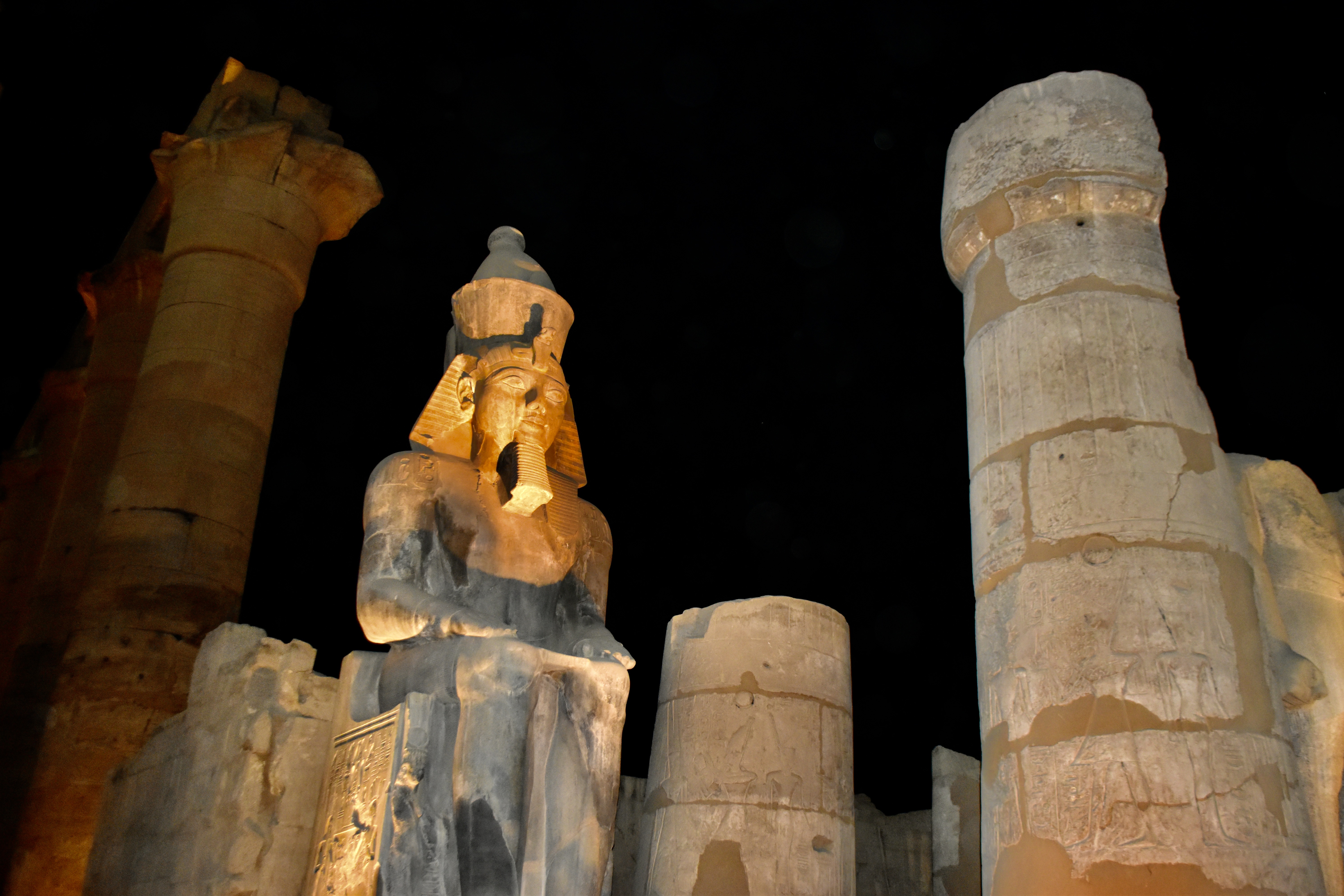 Visiting the Luxor Temple at night, I was reminded of a similar jaunt a few years ago when we, with a different group, visited the ruins of the Roman city in the national park at Beit Shean, a few hours’ drive from where we live in Ma’ale Adumim. In both places, whoever is in charge used lights and special effects to create a magical moment, something different from the prosaic impression one would get in broad daylight. But here at Luxor, the only sound effects one could hear were those made by the tourists, lots of them, visiting the site. The volunteer guide at Beit Shean shone his laser beam at a spot near the top of a very tall pillar. Where I’m pointing, he said, that used to be ground level, and the little bit of the pillar that was above ground level was one side of our goal post when we played football.