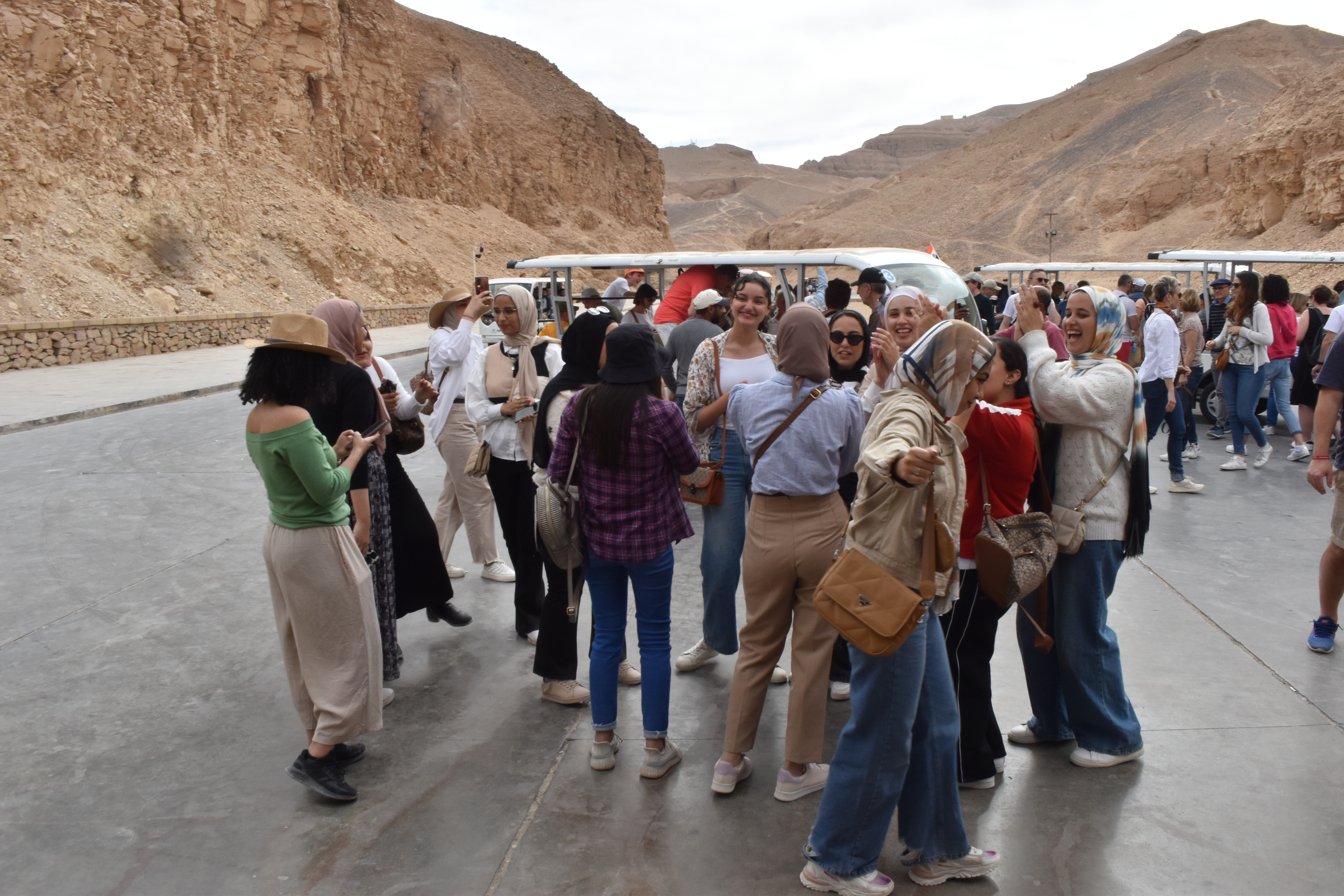 There was one added feature that was a pleasant surprise. Remember, we are in a third world country with a transportation system that’s a little behind the times (think Bush I and Saddam Hussein). But the little carts used to transport folks from the site entrance to the area where the tombs are – maybe a quarter of a mile – they’re electric, the latest technology! I guess the pollution from gas-powered vehicles would have done bad things to the frescoes deep under the ground. They’re not doing such good things to our lungs, but that’s another matter.